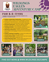 Outdoor Adventure Camp for 7–11 Year Olds, a mixed-age primary camp designed for children ready for challenge, responsibility and real adventure. Camps are 9.00am-12.30pm daily according to the schedule. Drop-off from 8.45am. Our camp offers an immersive outdoor experience inspired by the Forest School ethos. Children step away from screens and into purposeful adventure — building skills, confidence and friendships in nature. Why families choose Wildlings: - Participant-led adventures – children help shape the week, choosing challenges and projects that make every camp unique. - Purposeful outdoor learning – every activity builds resilience, independence and environmental stewardship. - Experienced educators – Forest School trained, first aid certified professionals who balance freedom with strong safety systems. - Award-winning programme – Expat Living Readers’ Choice Award winners three years running. Child Safeguarding certified – safety and wellbeing are always our priority. - Private nature campus – hosted in our purpose-designed Wildlings space at City Sprouts Farm, West Coast Park. Experiences include: - Wilderness survival skills - Team challenges such as Amazing Race-style missions, geocaching adventures and more - Nature walks around WCP including Mangrove Discovery - Forest School tool use, including whittling knives, saws, hammers, loppers - Outdoor cooking and campfires, including farm to table - Nature arts and creative build projects - Environmental science activities (natural mosquito repellent, microgreens kits) - Wildlife observation and exploration - Archery experience with Salt & Light Archery Key Learning Outcomes - Children leave camp stronger — physically, socially and mentally: - Physical capability – improved strength, stamina, coordination and outdoor competence. - Strategic thinking – problem-solving, planning and adaptive thinking through real-world challenges. - Resilience and courage – learning to manage risk, push comfort zones and persevere. - Leadership and teamwork – collaboration, negotiation and stepping up within mixed-age groups. - Practical life skills – safe tool use, fire craft, navigation and environmental knowledge. - Creativity and innovation – designing, building and experimenting with natural materials. - Environmental stewardship – developing respect, responsibility and connection to the natural world. Let’s get these city kids outdoors — capable, confident and ready for adventure.